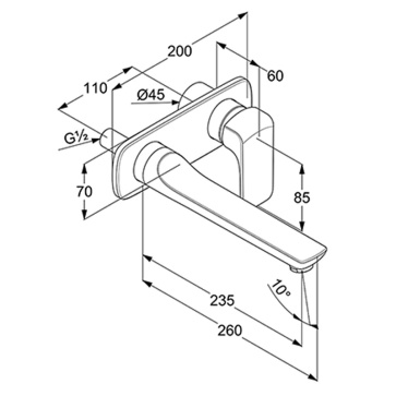 Смеситель настенный KLUDI AMEO для умывальника, внешняя монтажная часть, длина излива 235 мм, хром (412450575)