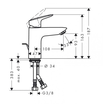Смеситель для раковины Hansgrohe Logis 100 CoolStart, со сливным гарнитуром, однорычажный, хром (71102000)