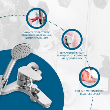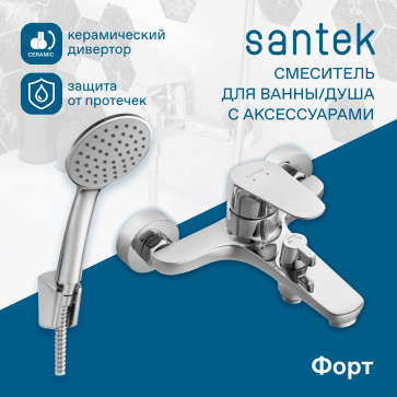 Смеситель для ванны Santek Форт с ручным душем, керамический картридж, хром (WH5A10004C001)