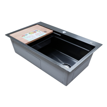 Кухонная мойка AZARIO NAOMI (750*460*220) нержавеющая сталь черный соты (сифон, сифон, корзина, доска) (AZB7546H)