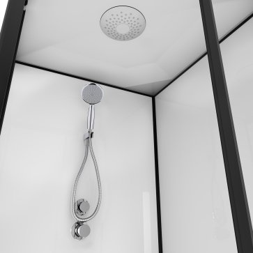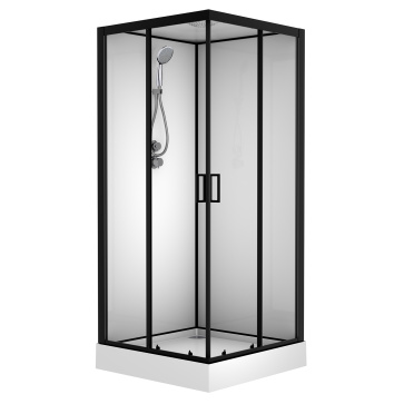 Душевая кабина Loranto NEO 90x90x(190+15) с низким поддоном 15см, прозрачное закаленное стекло 5 мм, задние стеклянные стенки белые, профиль черный-матовый (CS-22110)