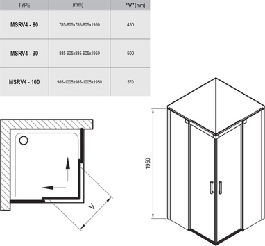Душевой уголок Ravak Matrix MSRV4 90х90 см, transparent, хром (1WV77C00Z1)