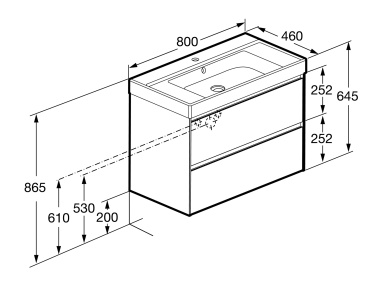 Тумба под раковину Roca Ona 800 подвесная, 2 ящика, темный вяз (A857630511)
