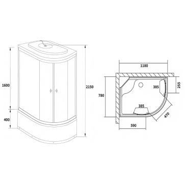Душевая кабина Loranto 1180х780х2080 левосторонняя, белое заднее стекло, поддон 14 см, прозрачное стекло 4 мм, профиль черный (CS-876EBTM/W-120)